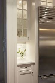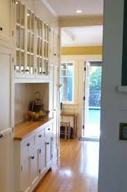The recessed cabinet on the right provides display space for china and crystal pieces and below are refrigerator drawers and more overflow storage.